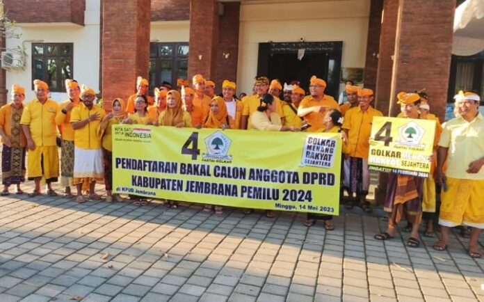 InfoJembranaNews – Partai Golongan Karya (GOLKAR) Jembrana berambisi merebut 9 kursi di Dewan Perwakilan Daerah (DPRD), dari sebelumnya hanya 6 kursi. Ketua Dewan Perwakilan Daerah (DPD) Golkar, I Made Suardana, menyampaikan hal tersebut pada pendaftaran Bakal Calon Legislatif (Bacaleg) di Komisi Pemilihan Umum (KPU) Jembrana, Minggu 14 Mei 2023.
