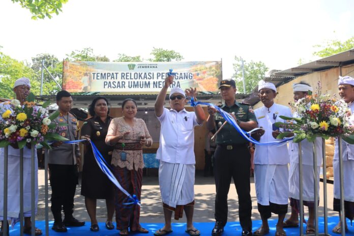 Bupati Jembrana I Nengah Tamba resmi membuka pasar relokasi yang dipusatkan di areal parkir Pemkab Jembrana, Kamis 31 Agustus 2023. Sumber foto : istimewa/IJN