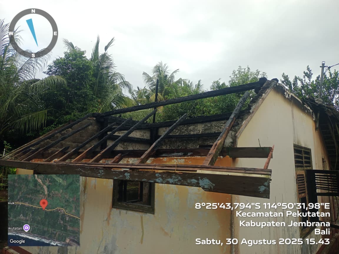 ​InfoJembrana.com | JEMBRANA – Sebuah kebakaran melanda sebuah bangunan kamar suci di Banjar Yeh Kuning, Desa Pekutatan, Kecamatan Pekutatan, Kabupaten Jembrana, pada Sabtu, 30 Agustus 2025. Peristiwa yang terjadi sekitar pukul 14.30 WITA ini menghanguskan seluruh bangunan dan perlengkapan persembahyangan di dalamnya, menimbulkan kerugian materiil yang ditaksir mencapai Rp50 juta.