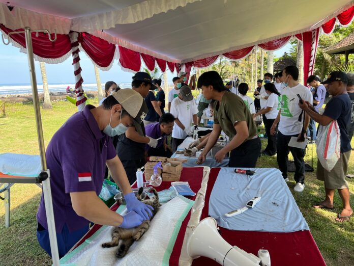 Ratusan HPR (Hewan Penular Rabies) memperoleh vaksinasi rabies dan juga tindakan sterilisasi, serangkaian World Rabies Day 2025 yang digelar di Rest Area Desa Pengeragoan, Kecamatan Pekutatan, Jembrana, Minggu 28 September 2025. Sumber foto : istimewa /IJN.