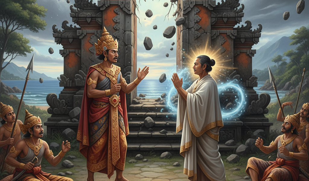 Para pengawal memaksa bahkan mengancam akan membunuh beliau. Mereka berkeras akan menanggung semua resikonya. Danghyang Nirarta akhirnya bersiap untuk melakukan sembah. Keajaiban besar pun terjadi seketika di sana.