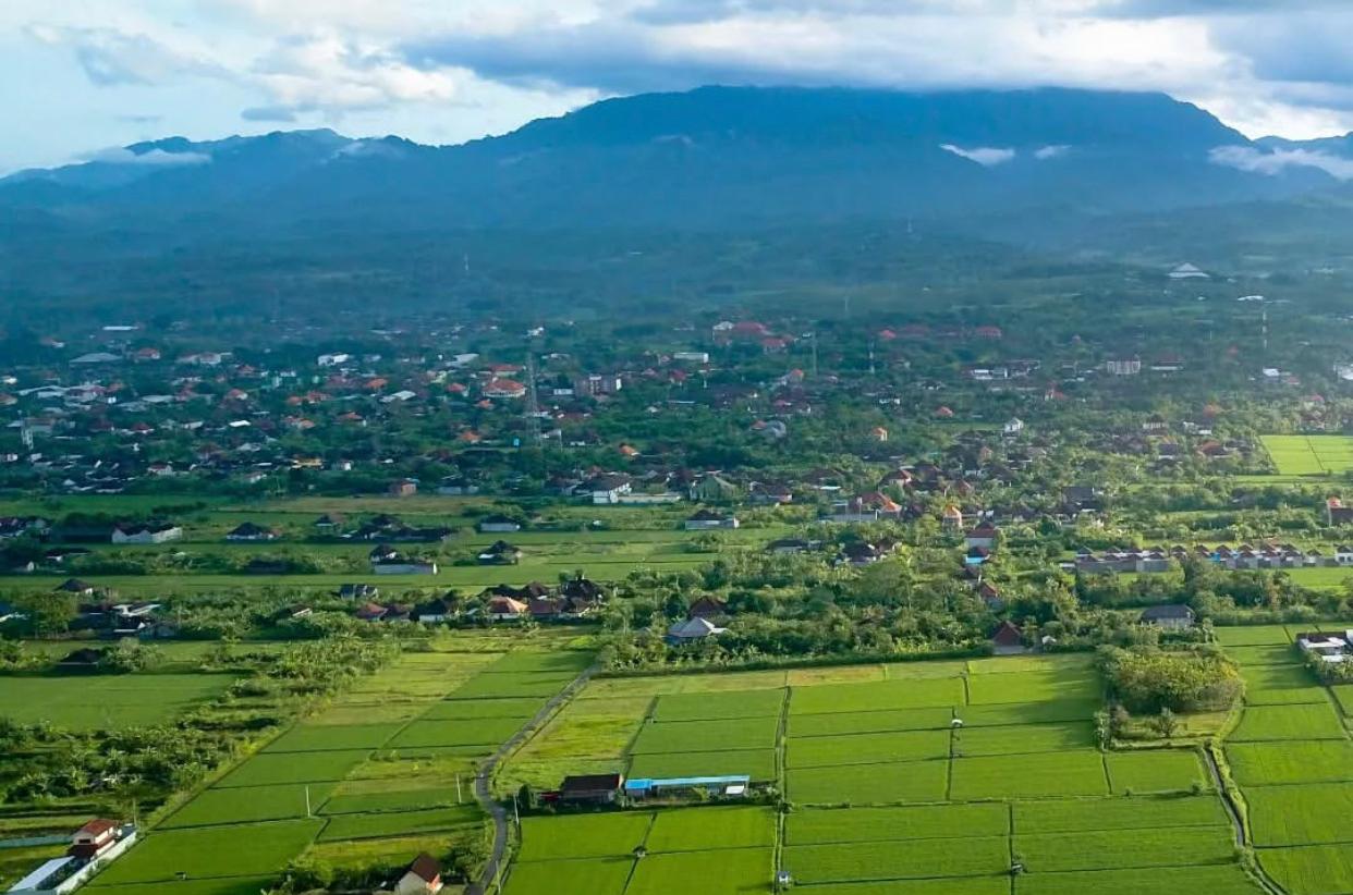 Hamparan sawah hijau dan perbukitan nampak atas dari Desa Budeng menyapa pagi kalian. (ig @dede_nevrdie).