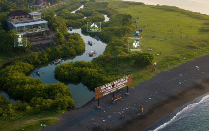 InfoJembrana.com | JEMBRANA- Bagi kebanyakan pelancong, Gilimanuk mungkin hanyalah deretan antrean kapal feri yang sibuk dan deru kendaraan yang terburu-buru menyeberangi Selat Bali. Namun, coba matikan mesin kendaraan Anda sejenak, hirup aroma laut yang tenang, dan biarkan kaki melangkah ke balik keriuhan pelabuhan. Di ujung barat Kabupaten Jembrana ini, Gilimanuk menyimpan rahasia besar yang dijuluki “Segitiga Emas”—sebuah harmoni antara sejarah purba yang bisu, ekosistem mangrove yang asri, dan keindahan bawah laut yang mendunia dalam balutan Wisata Alam Jembrana.
