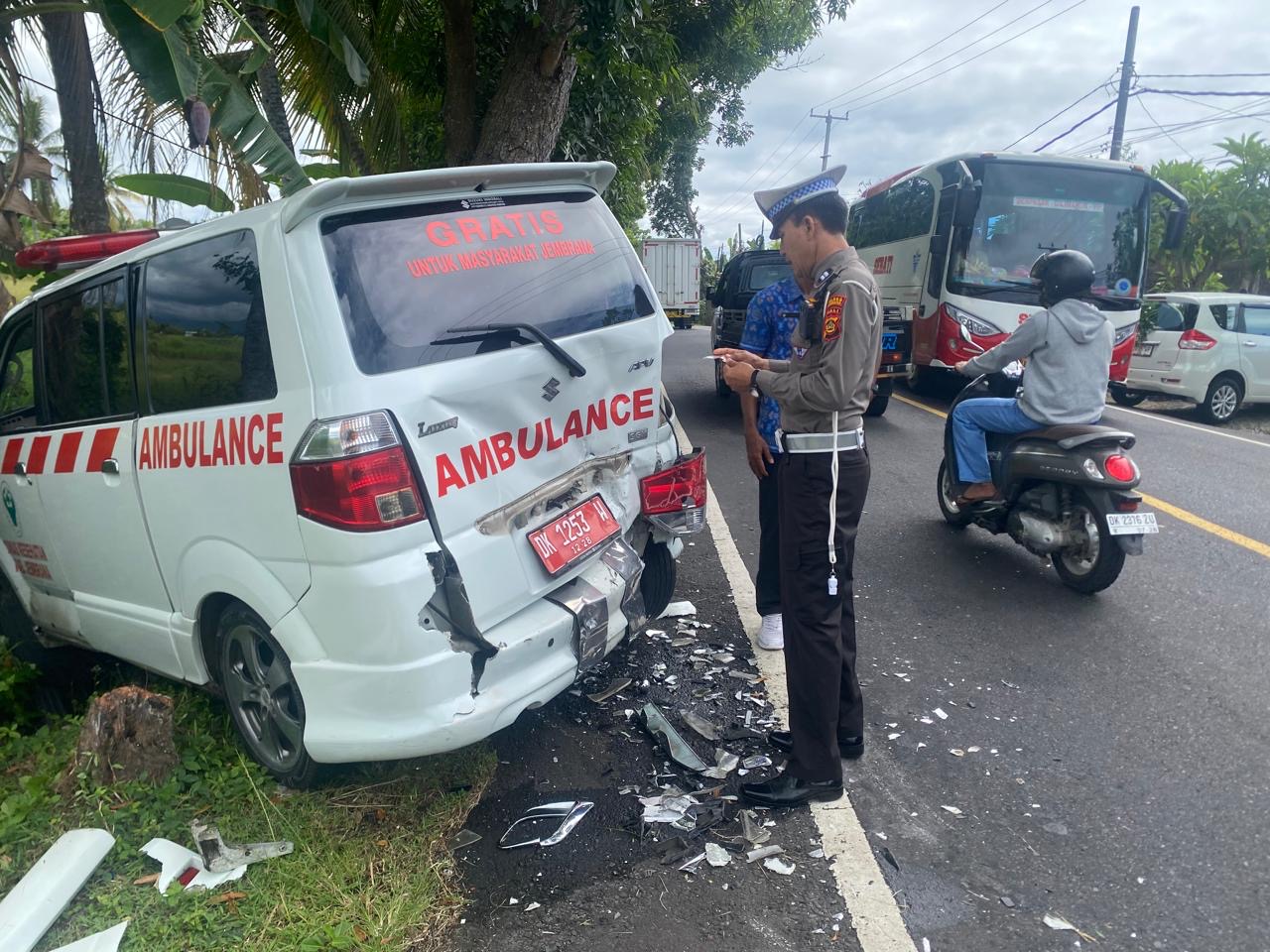 Dari informasi, insiden ini melibatkan sebuah mobil Suzuki Ertiga bernomor polisi DK-1015-WP yang menghantam bagian belakang ambulans APV DK-1253-W, dikemudiikan Komang Suartama (41) asal Yehembang Kauh, Mendoyo, yang tengah terparkir di bahu jalan.
