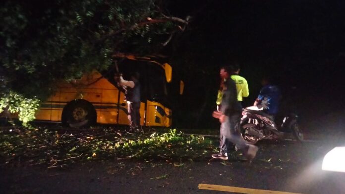 ​”Pengemudi berusaha menghindari pohon tumbang tersebut, namun kendaraan justru terperosok ke bahu jalan sebelah kiri dan menghantam pohon perindang lainnya,” ujar AKP Kukuh Emanuel, Senin siang.