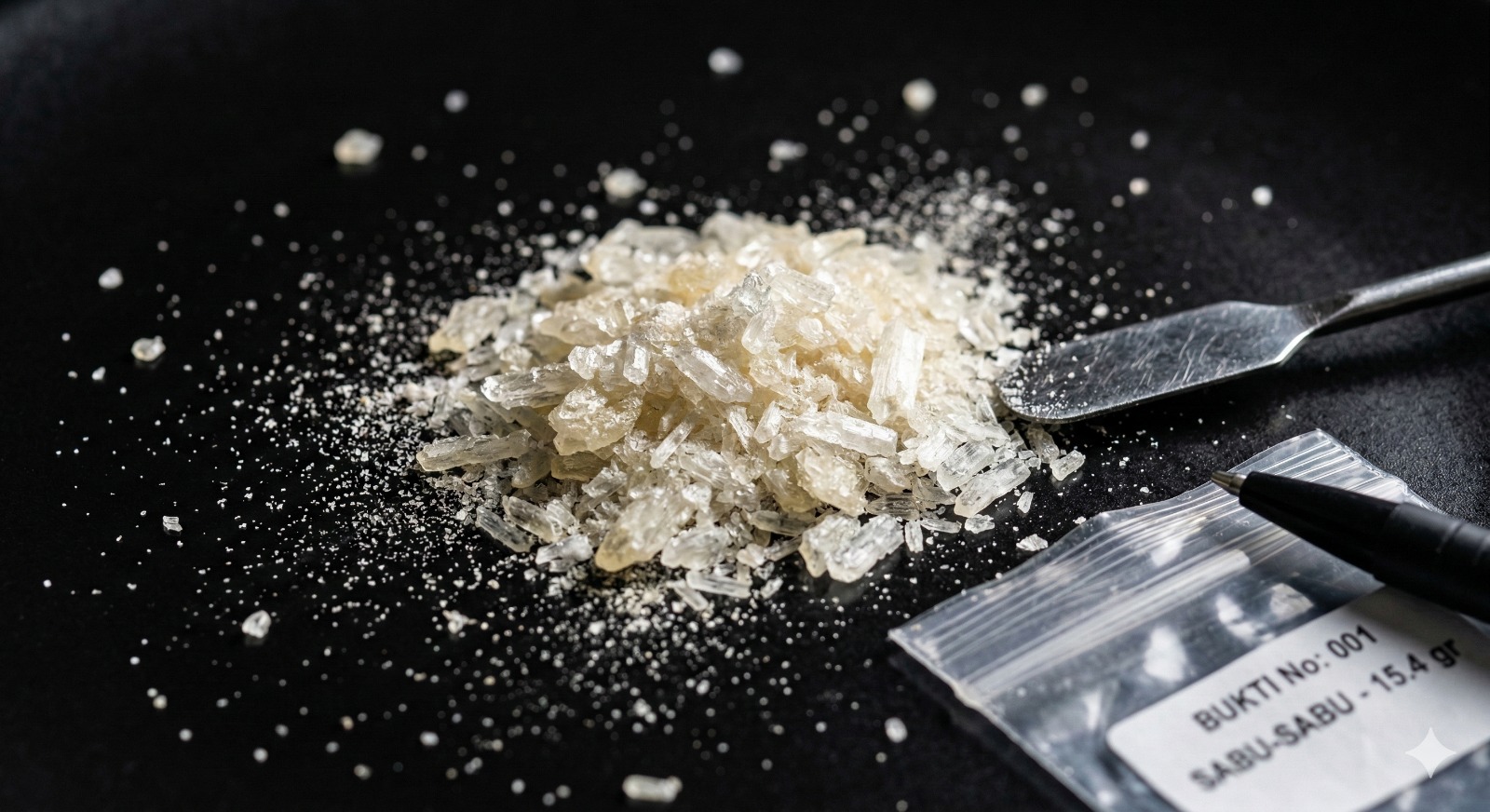 Petugas menemukan berbagai jenis bahan kimia berbahaya yang tersimpan rapi dalam jerigen besar di kamar tersangka. Barang bukti tersebut meliputi cairan metanol, ethyl acetate, hingga hydrobromic acid yang merupakan bahan baku pembuatan narkotika. Temuan peralatan laboratorium seperti tabung erlenmeyer dan timbangan digital memperkuat dugaan adanya aktivitas produksi massal secara mandiri.